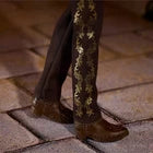 Ken doll celebrates Día De Muertos in a distinguished cream and black suit. Inspired by the colorful cempasúchil (or marigold) flower, which symbolizes the connection between the living and the dead, his suit is trimmed in metallic gold flowers. Colorful floral accents bloom across his shirt cuffs as well. While sold separately, both Barbie and Ken Día De Muertos dolls are posable and wear complementary fashions, making them a perfect set to inspire joy and remembrance. Doll stand and Certificate of Authenticity included. Doll cannot stand alone. Colors and decorations may vary.